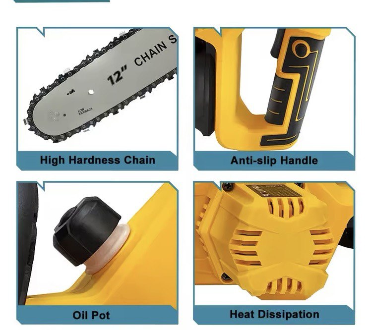 The brushless motor offers extended lifespan, lower noise, and reduced maintenance. Equipped with a 12-inch guide bar, auto-lubrication system, and ergonomic anti-vibration handle, this chainsaw provides maximum control and comfort during operation.